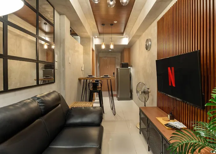 Modern Industrial 1 Bedroom | Condo | Moa Shore 3 Naia マニラ市はリサール公園から車で10分で、モールオブアジア ベイエリア アミューズメントパークなどの家族連れに人気のスポットから2.6キロメートル離れた所の場所にあります。 ビジネスでもレジャーでもWiFiを利用することができます。